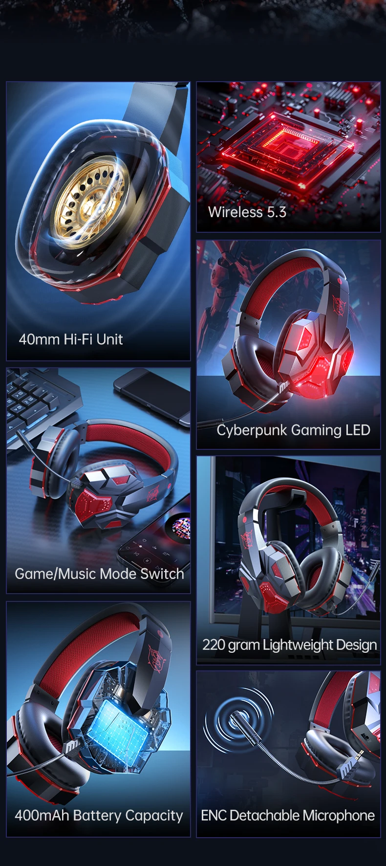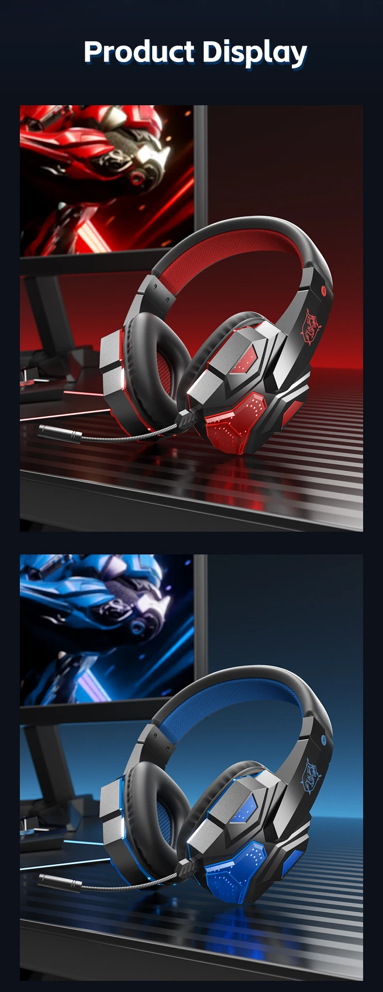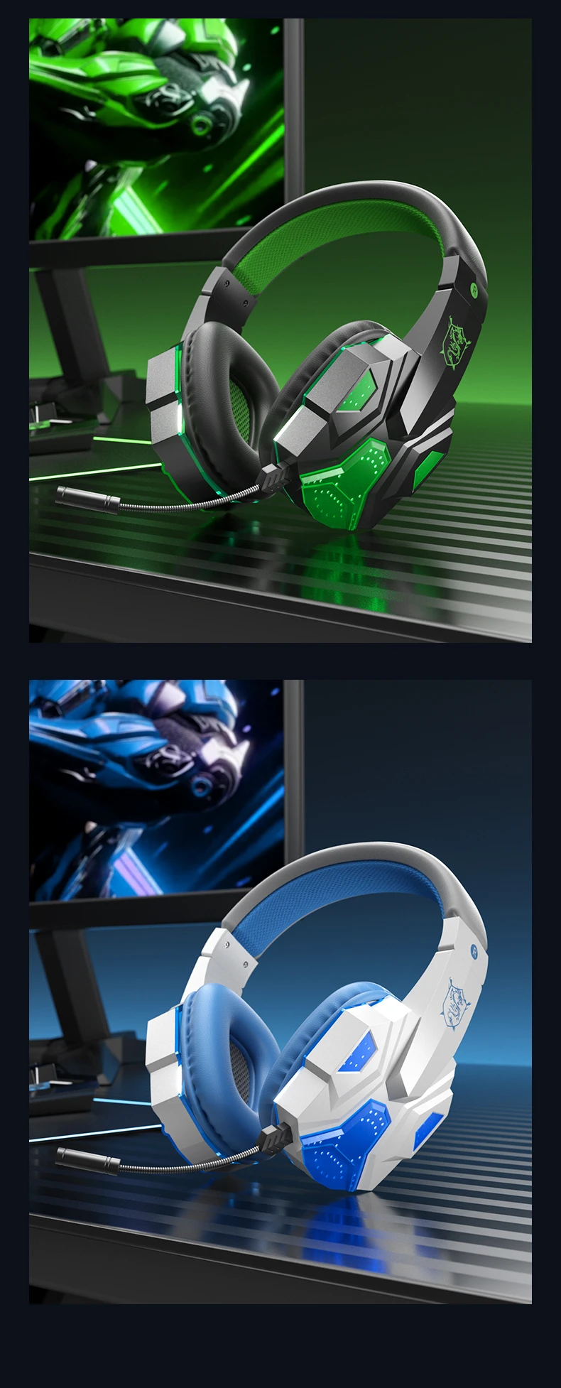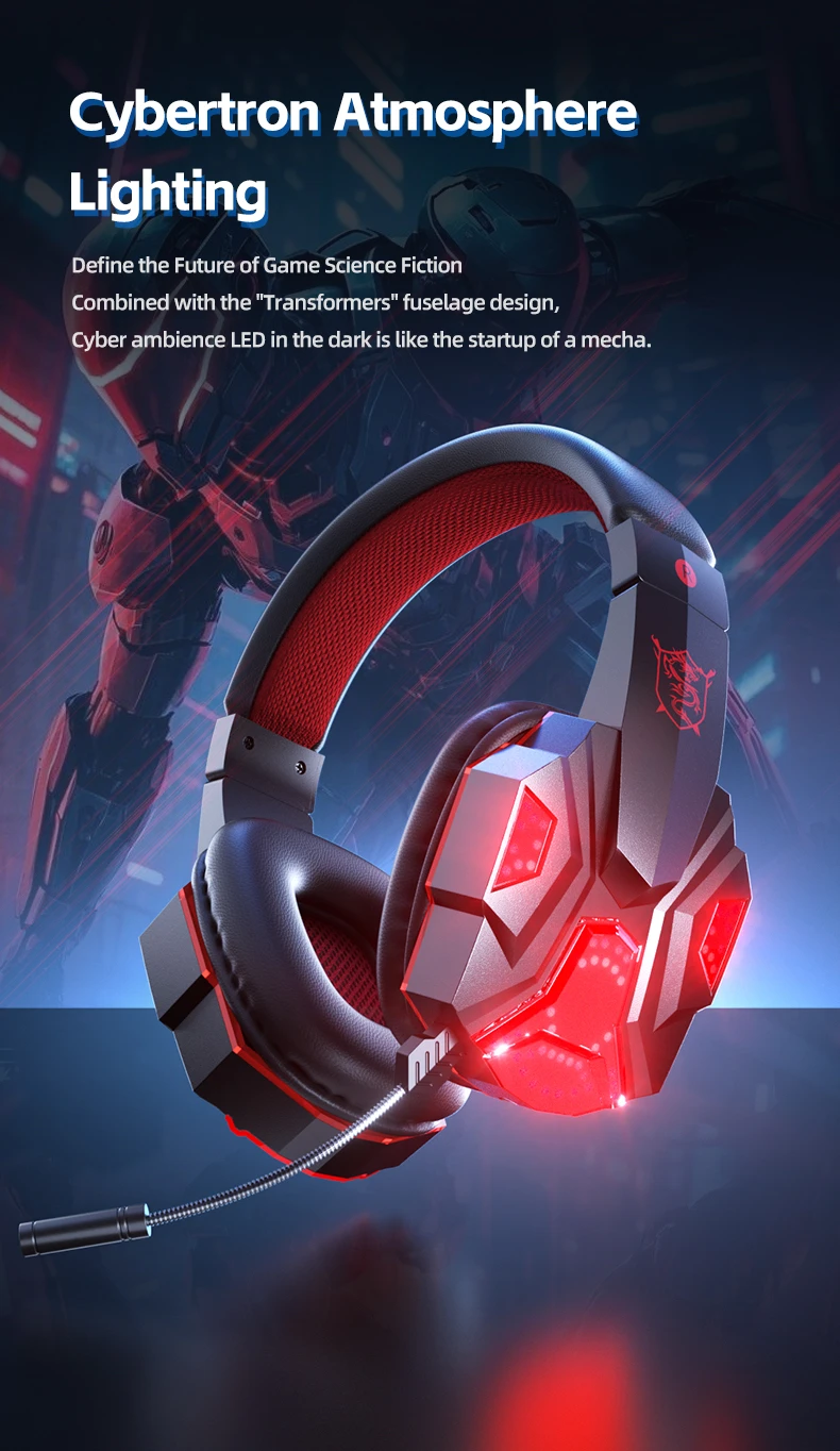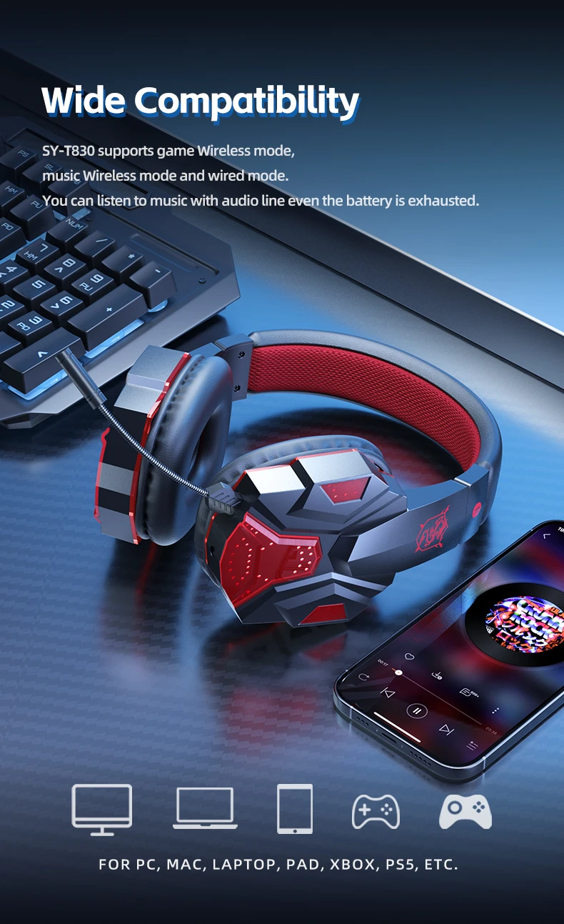 Casque de jeu sans fil Soyto T830 BT5.3 avec micro, écouteurs circum-auriculaires et éclairage LED pour PC, téléphone, ordinateur portable, jeux, musique et films.