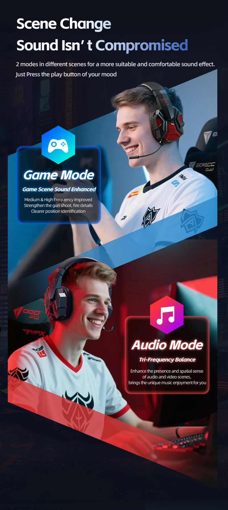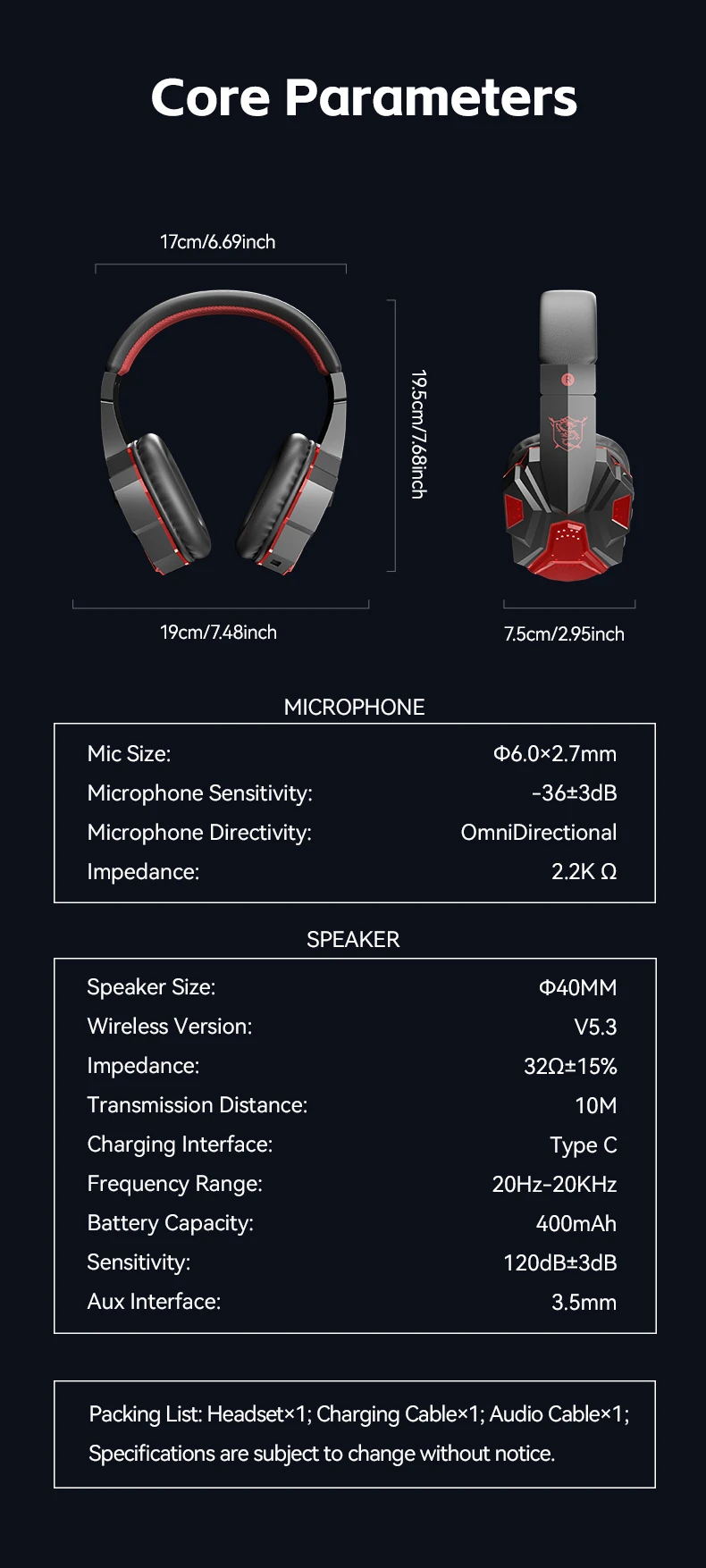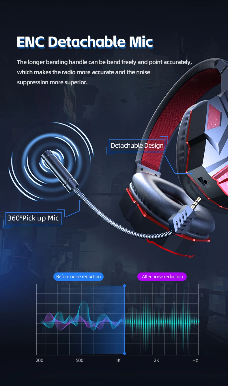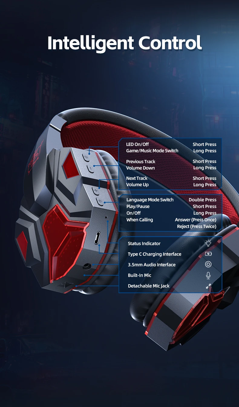 Casque de jeu sans fil Soyto T830 BT5.3 avec micro, écouteurs circum-auriculaires et éclairage LED pour PC, téléphone, ordinateur portable, jeux, musique et films.